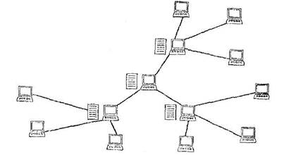 3. От схемы зависит состав оборудования и программного обеспечения Топологию выбирают исходя из потребностей предприятия. Если предприятие занимает многоэтажное здание, то в нем оптимально может быть применена схема снежинка, в которой имеются файловые серверы для разных рабочих групп и один центральный сервер для всего предприятия (рис. 4).